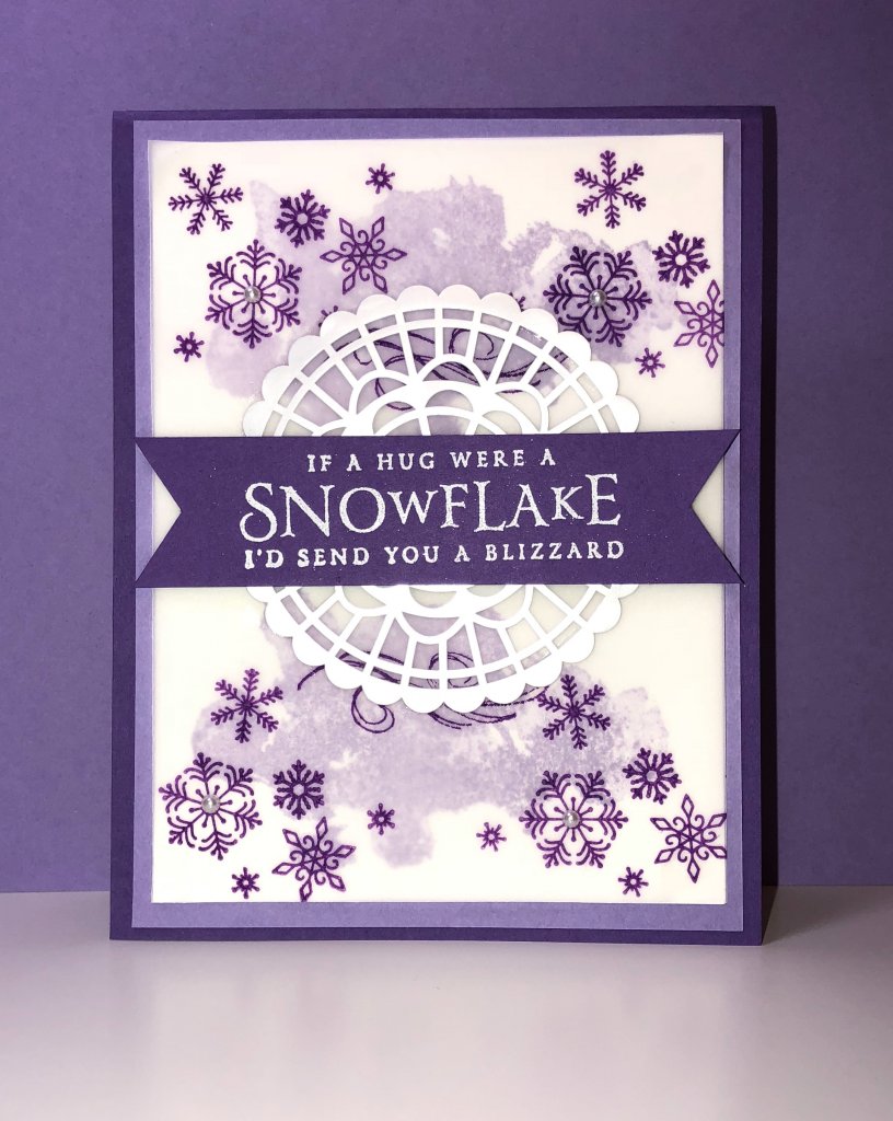 For today’s card, I used the cute Beautiful Blizzard stamp set! I just love making snowflake cards in the winter! This set has some cute snowflakes, clouds, and wind as well as some awesome sentiments too! You can also purchase it as a bundle and get the stamp set and the Blizzard Thinlits dies for 10% off! I did not use the die for this particular card but you can make some gorgeous snowflakes with it. I was having so much making this card, I decided to try it in four different color schemes. Take a look at them and let me know which is your favorite. I hope the video & card recipe is helpful to you as you make your own cards.