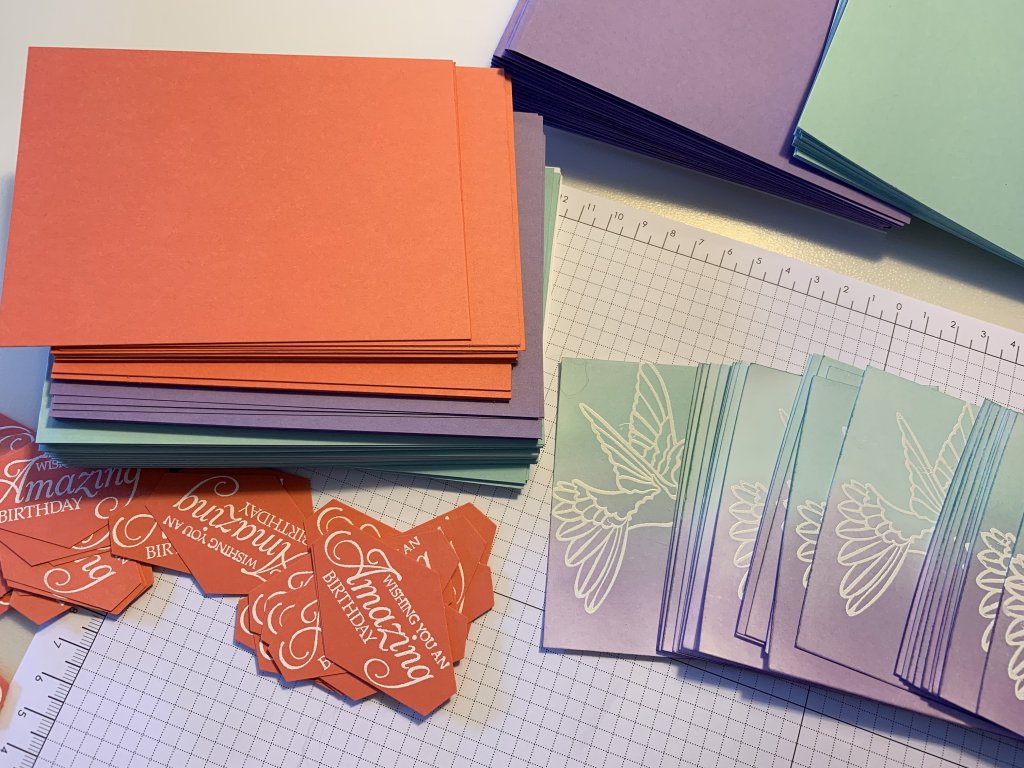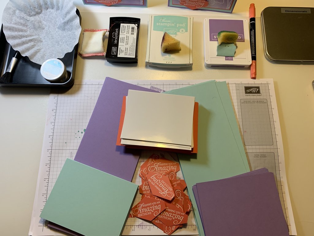 - Layer 1: Highland Heather or Pool Party – 4″ x 5 1/4″ (adhere to card front)
