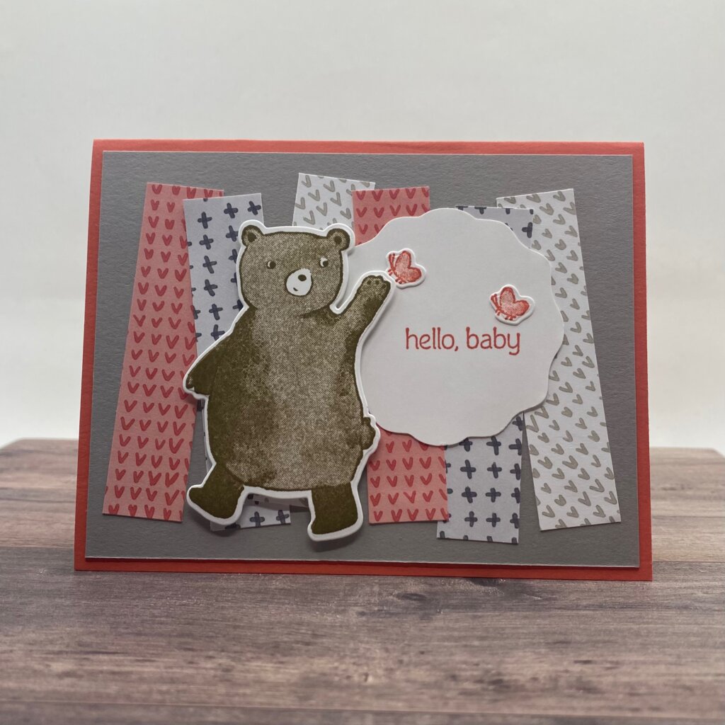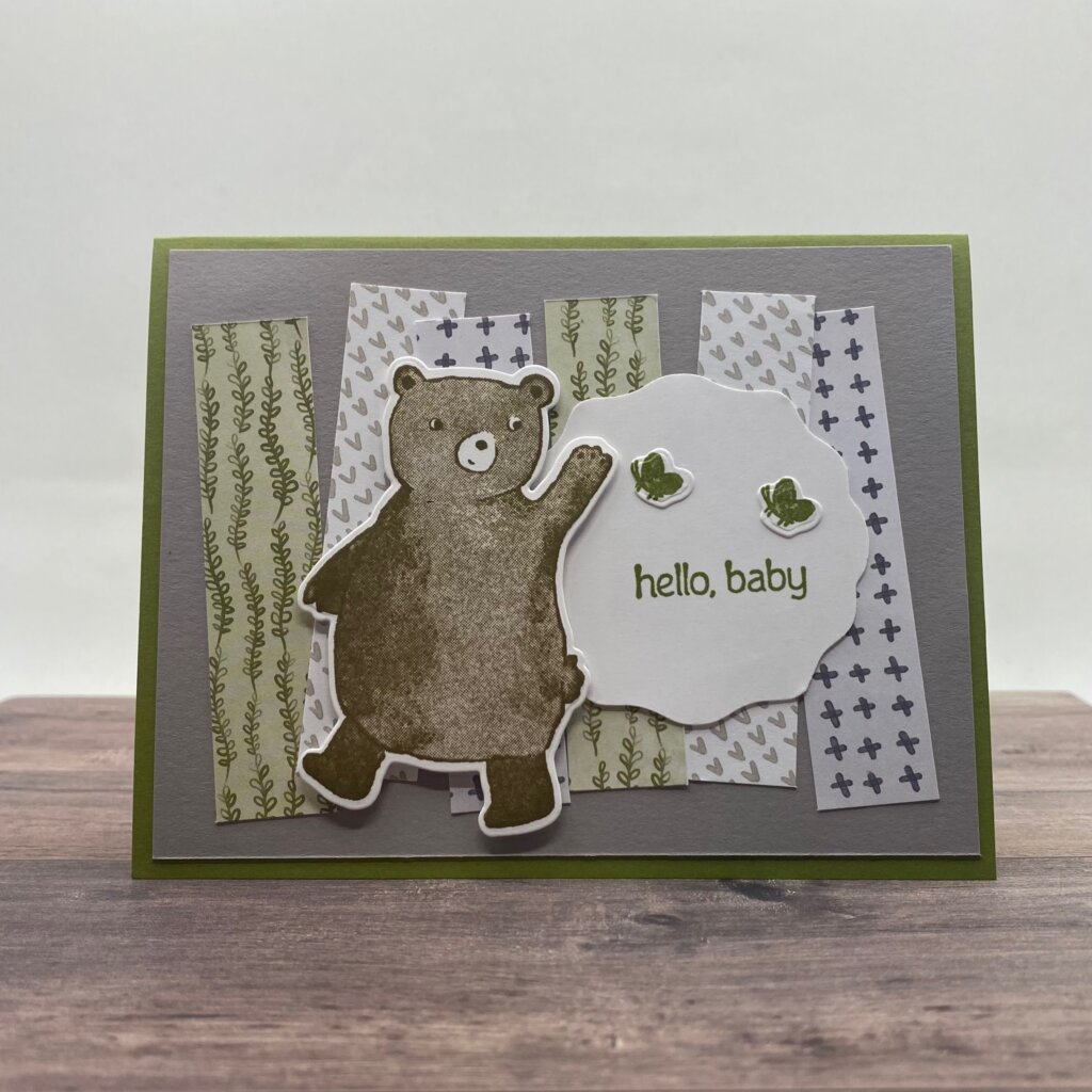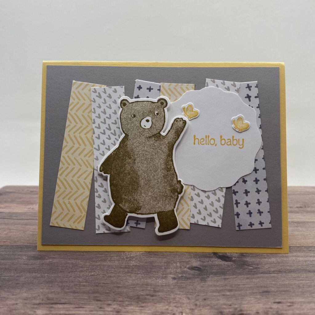 This is a great DIY card that is easy for you to recreate for any occasion just by changing the sentiment. I used a sentiment from the Peace to You stamp set. It fit perfectly! I made different “Baby” cards using the Hello Baby stamp from Happier Than Happy but you could easily make this into a cute birthday, thinking of you, get well… cards!