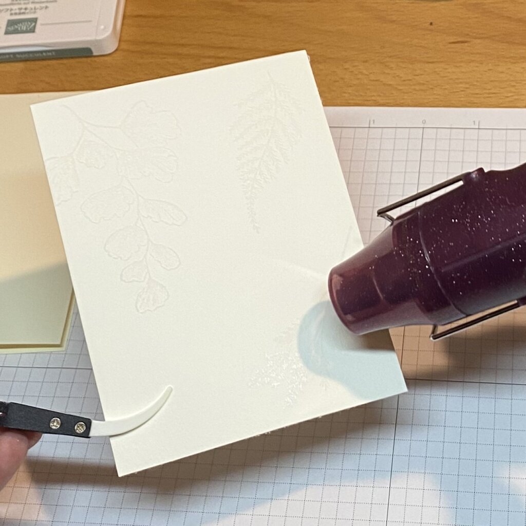 I’m so excited to share my card with you today! I have been featuring cards from the Nature’s Prints bundle over on my Facebook and Instagram pages this week. I made this card especially for sharing on my blog and I hope you enjoy it. Heat embossing and watercolor wash techniques are used to make this card but it’s still a simple card to make! I “CASED” this card idea straight from our Annual catalog. You can check it out on page 90.