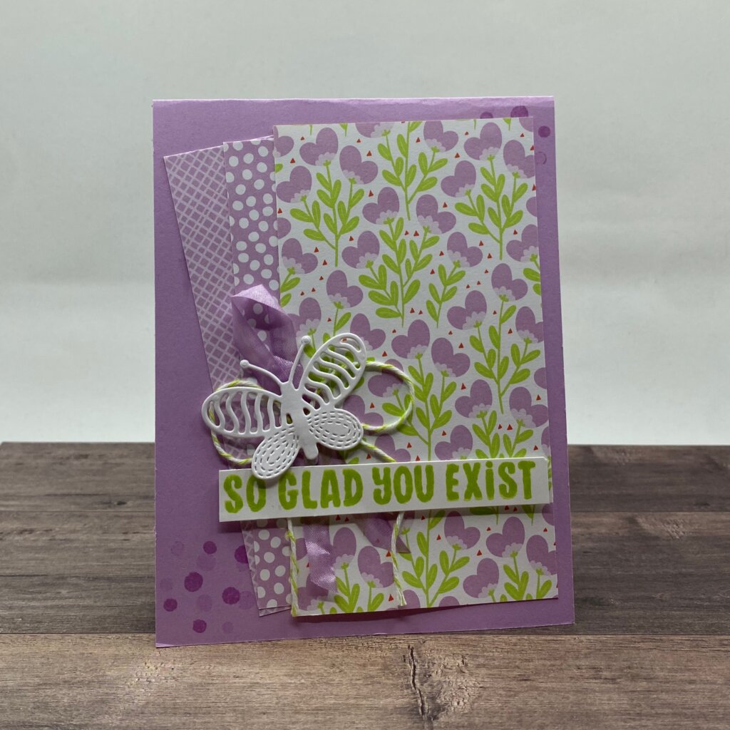 I decided to use the Best Butterflies Bundle for my card. I just love the these whimsical looking butterflies. This card is a super simple card that you can definitely DIY! You will find measurements and the product list below. I also made another card using a different designer paper to show how easy it is to change it up using whatever paper you have at home. I hope you give it a try!