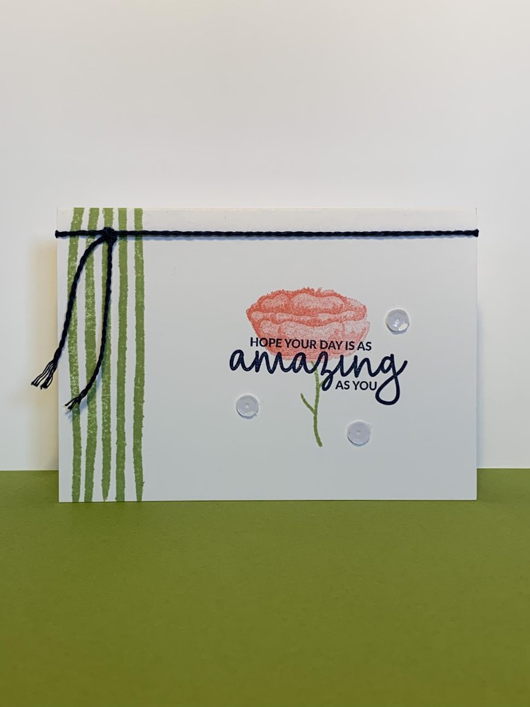 If you are a beginner stamper or are just wanting a quick & easy card to make, this card is for you!! It’s great for beginners because not many supplies are needed and it’s easy! I did add a little “bling” with the baker’s twine and sequins but you don’t even need those if you want something even more simple! In the video tutorial, I also share with you the project kit that is also retiring. I make 2 of the cards from the kit so you can see how easy they are to make as well.